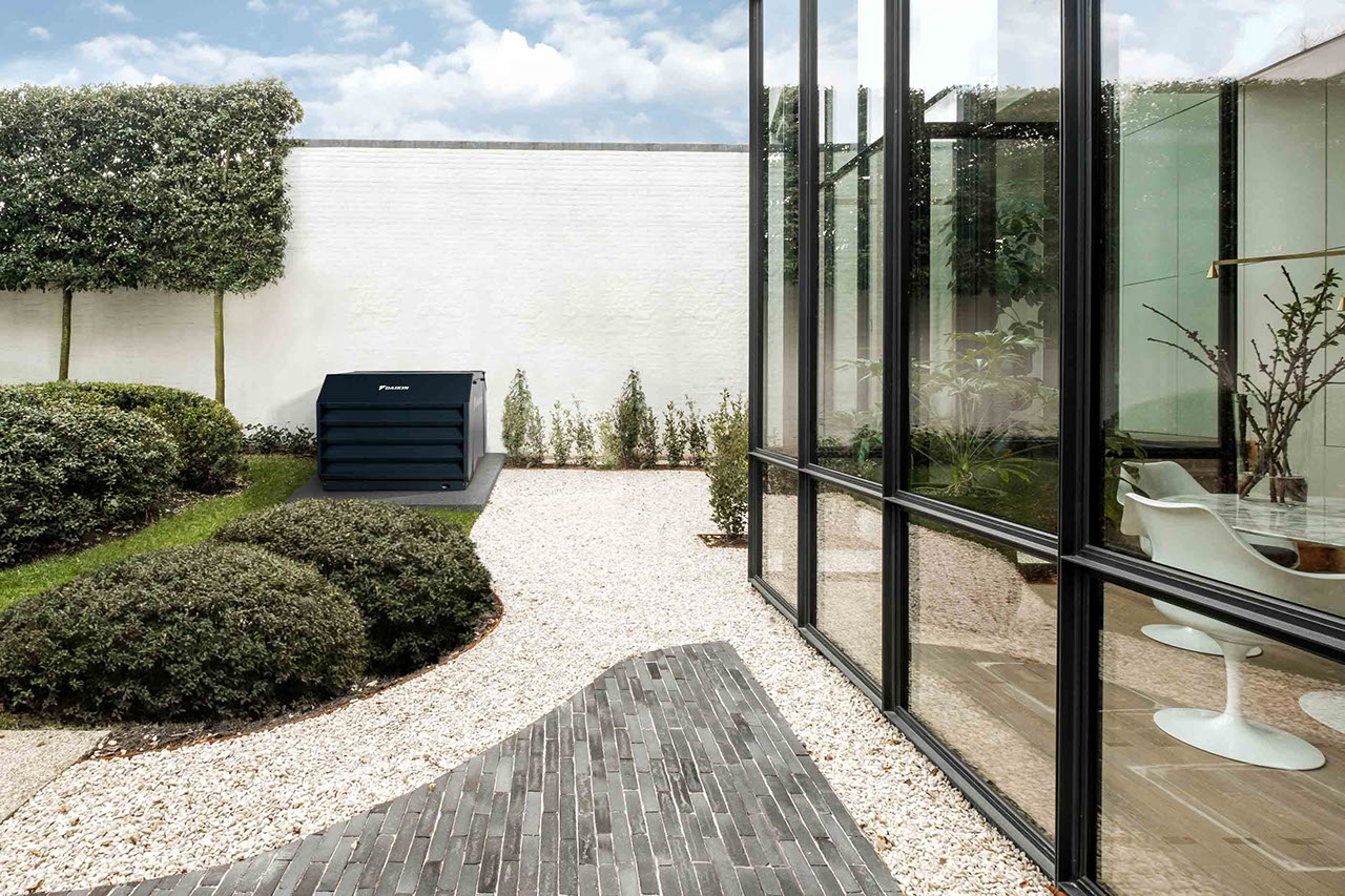 الوحدات الخارجية مدمجة ويسهل تركيبها بجوار الجدار أو على السطح أو الشرفة. يُعتبر نظام Sky Air حل معقول الكلفة للمباني الجديدة، وبديل مثالي للأنظمة الأقدم والأقل كفاءة، لأنه يستخدم الأنابيب والأسلاك الموجودة ويحد من متاعب قص فتحات في الجدران.
