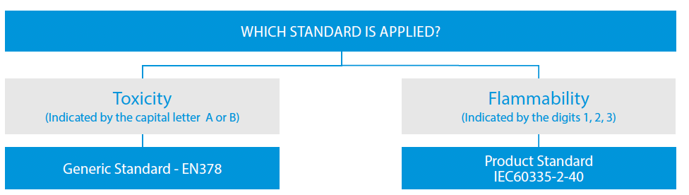 بوجود معايير مختلفة تتعلق بالنظم القانونية للسلامة الخاصة بغازات-F؟