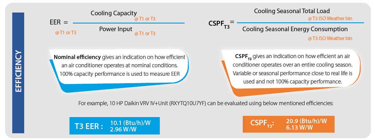 - It is expressed as the CSPF T3 value (Cooling Seasonal Performance Factor for Hot Climate CSPF T3).