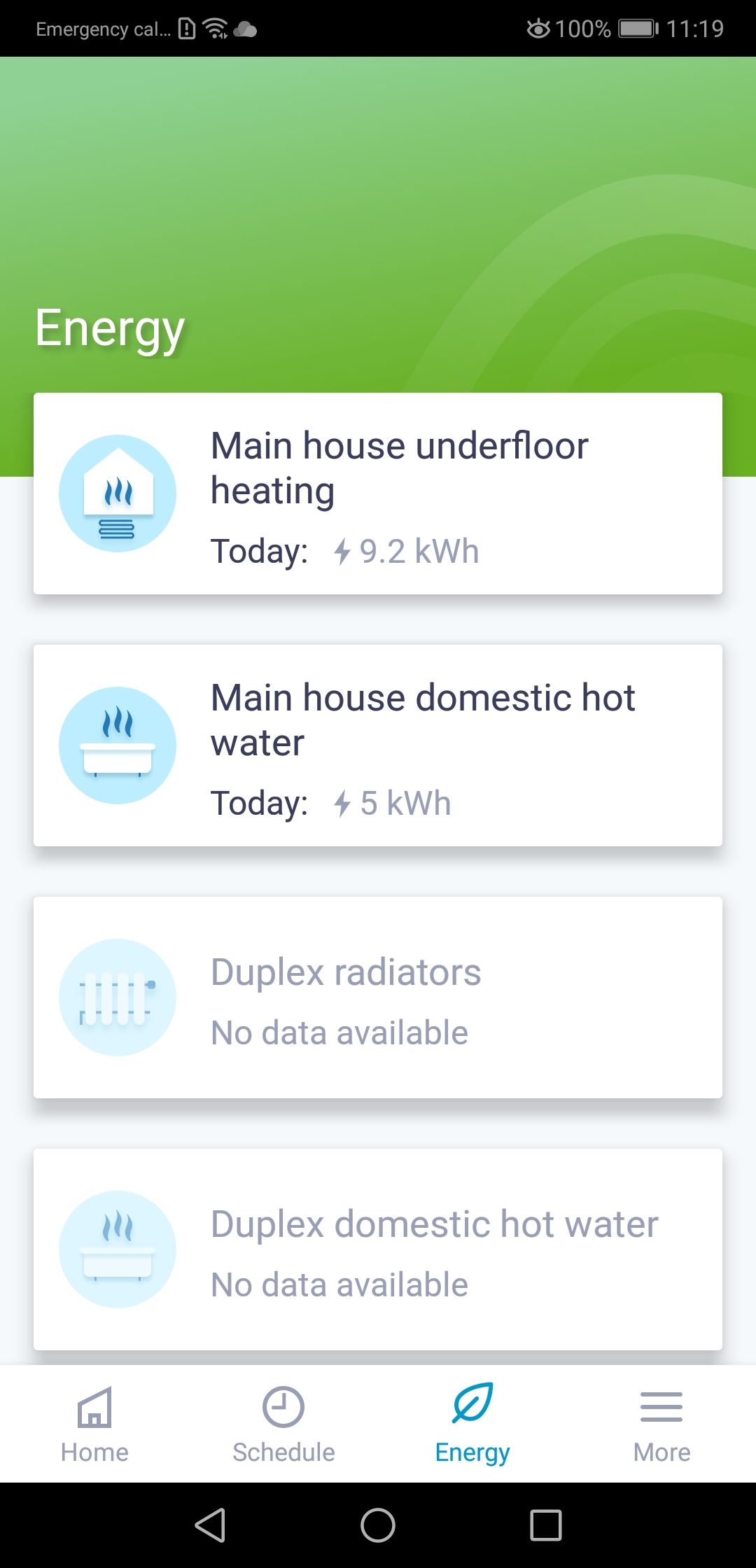 To see this data if it is available, tap “Energy” at the bottom of the home screen.